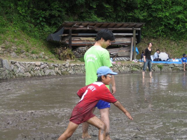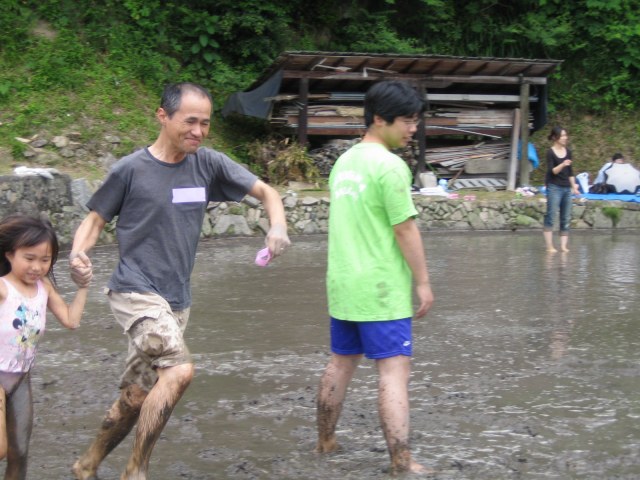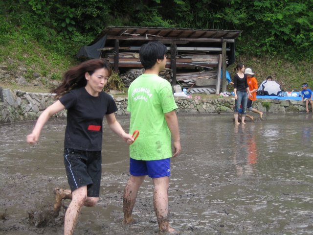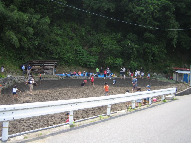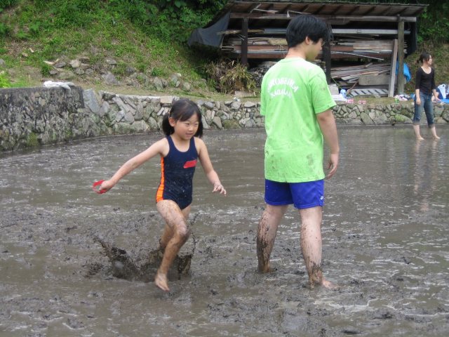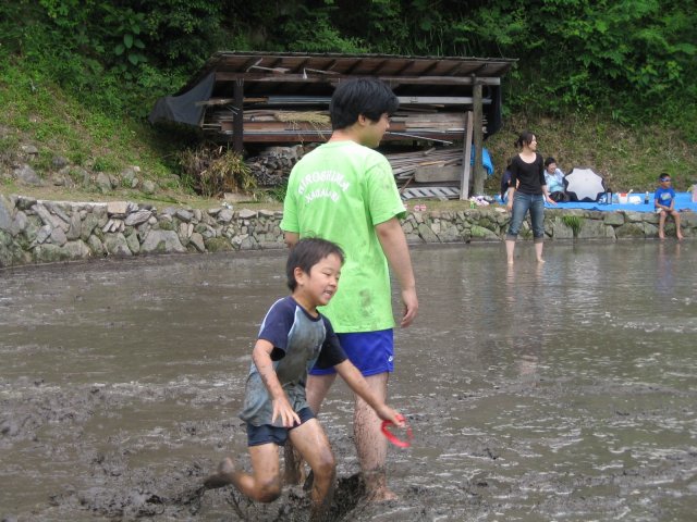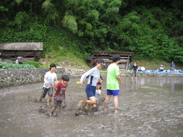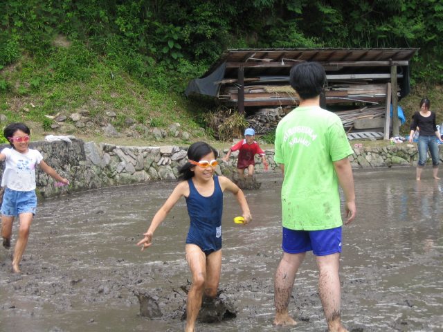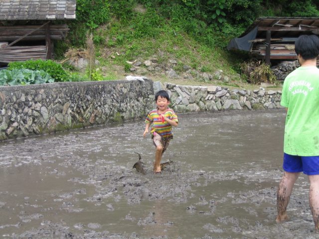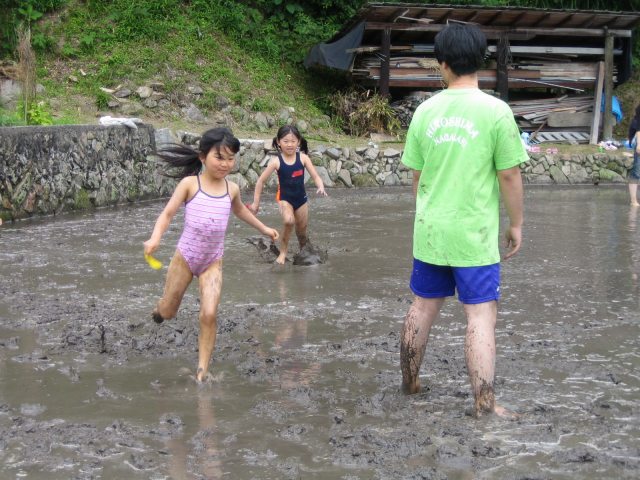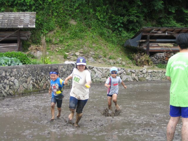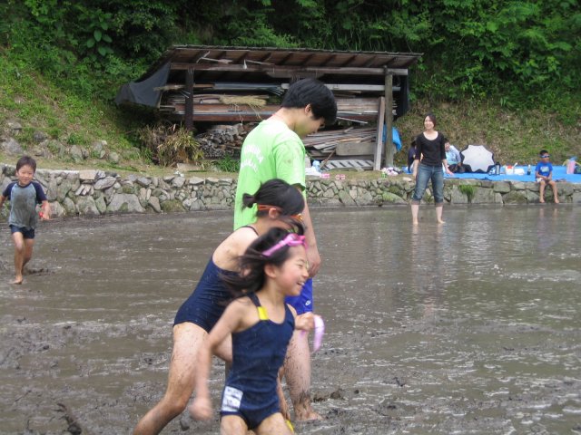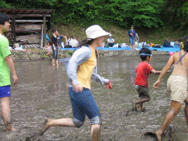 水をはるまえの田んぼ どろんこレースのはじまり 下のボタンをクリック
