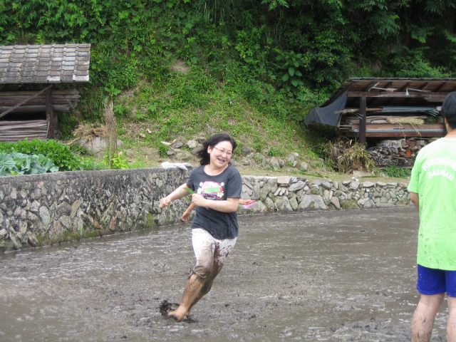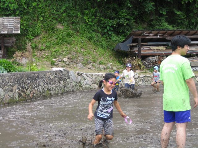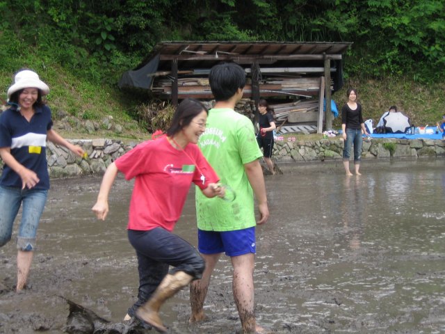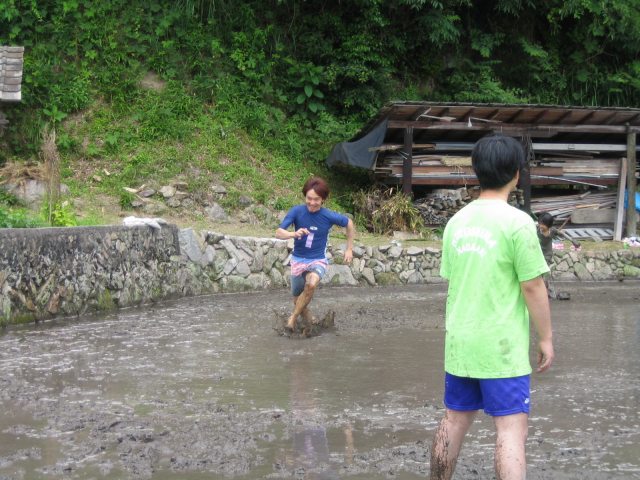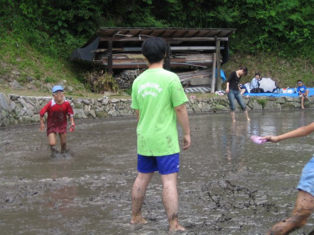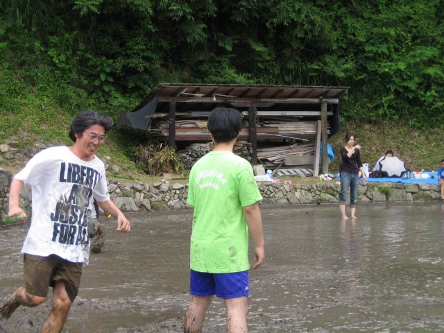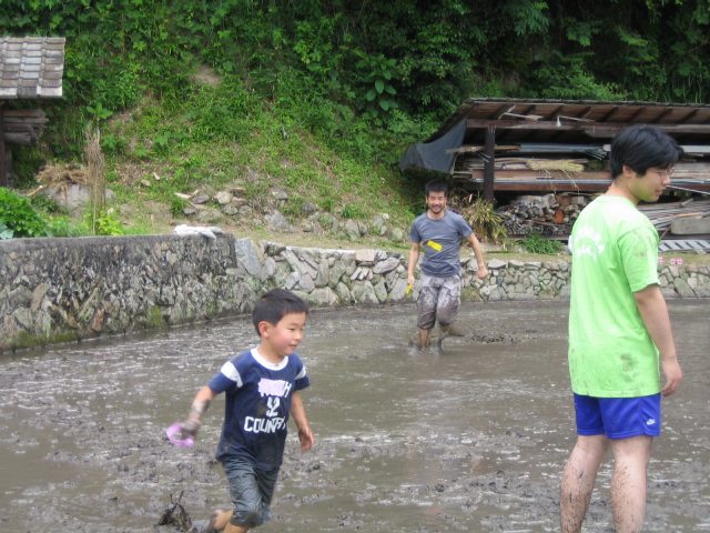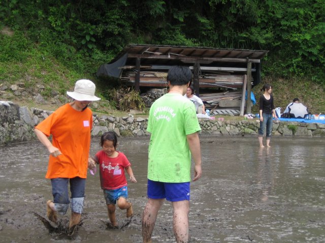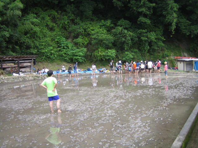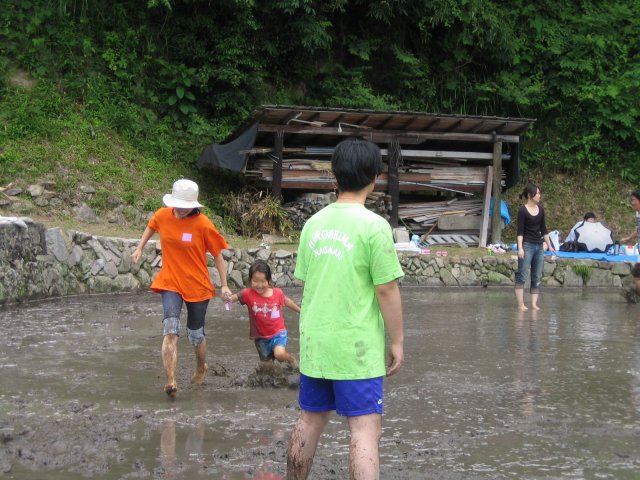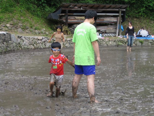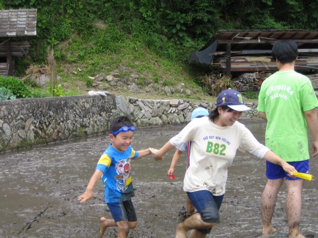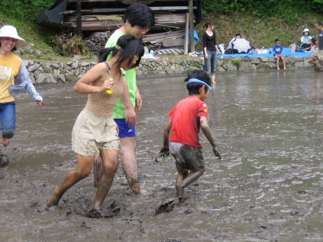 水をはるまえの田んぼ どろんこレースのはじまり 下のボタンをクリック