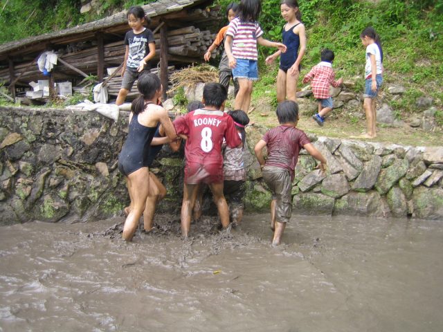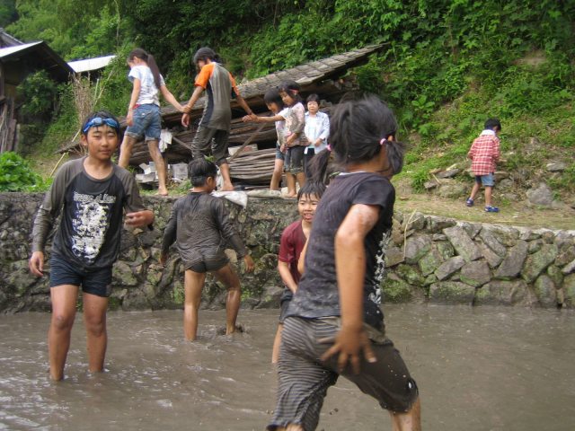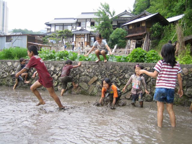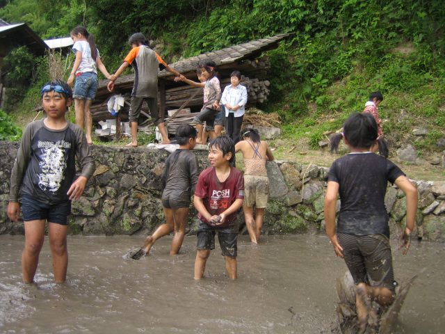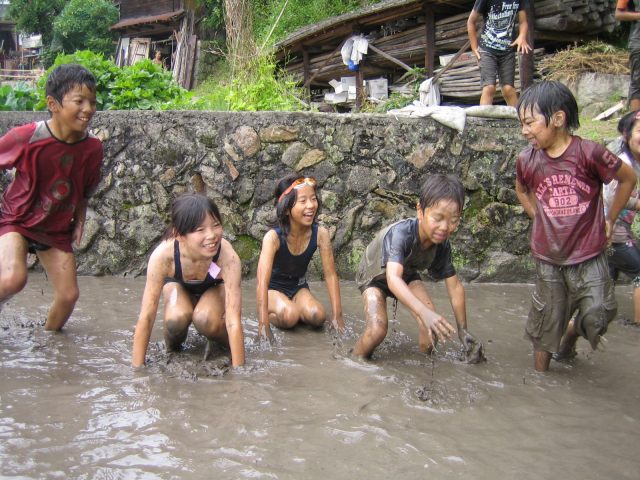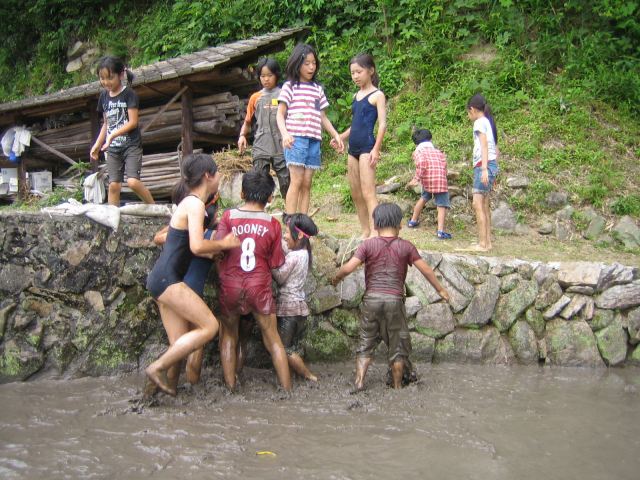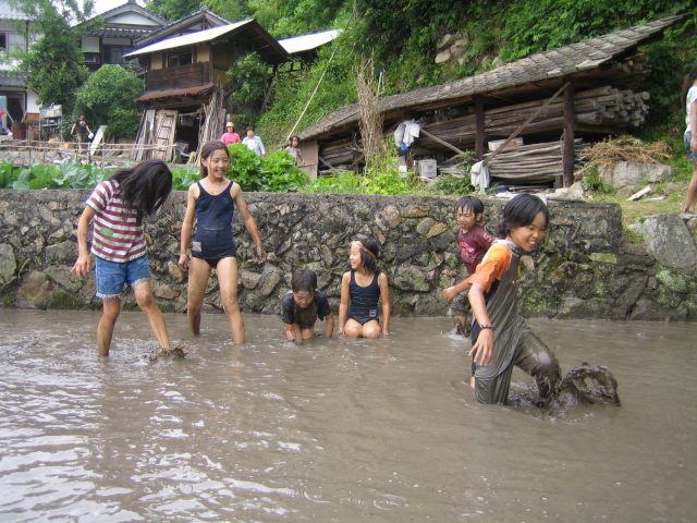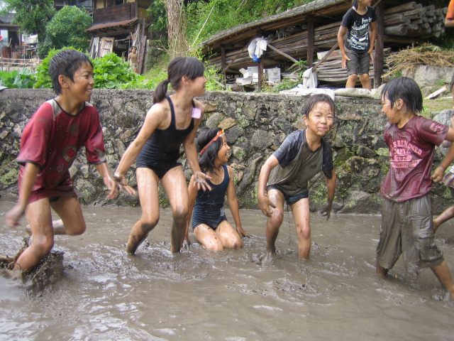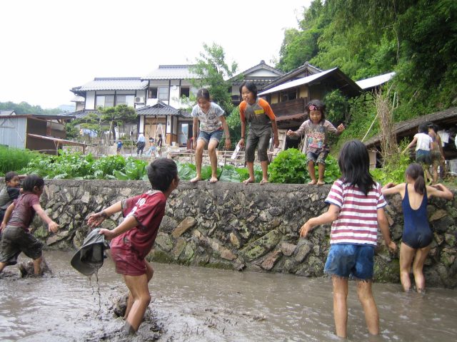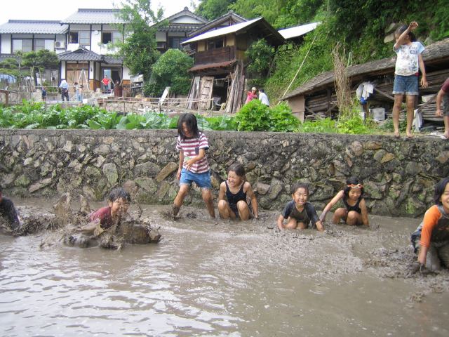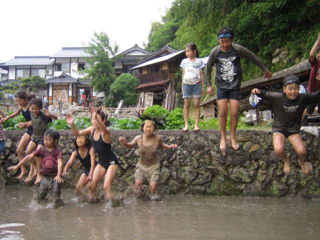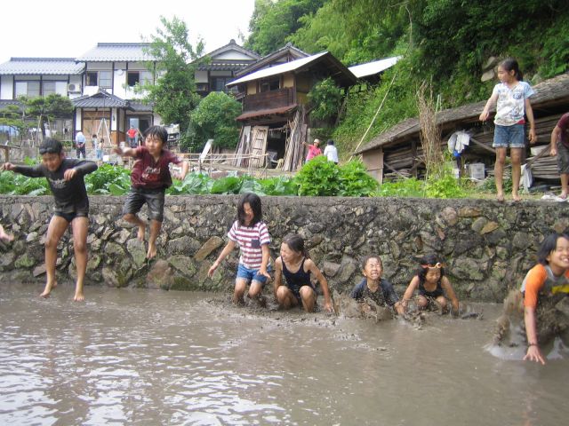 田んぼに飛び込む連続写真