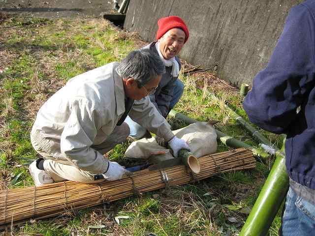 竹から酒器を切り出す かとちゃん