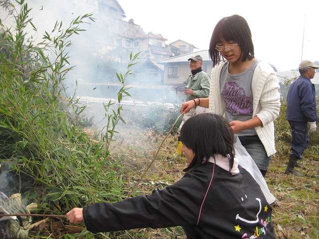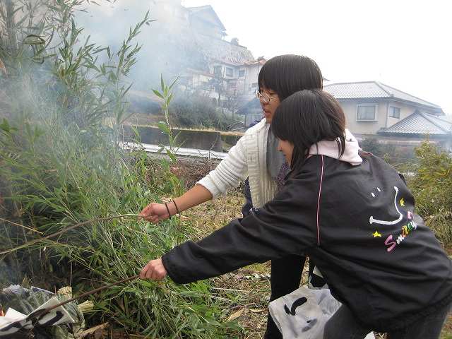 習字を火に入れる みのり・さおり